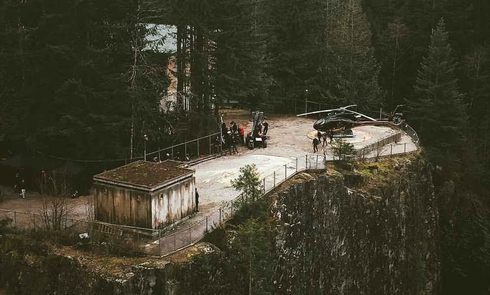 Found another The Predator set photo online, this one is from March, went relatively unnoticed. It features a Helipad and a fairly rusty looking metal shed on the side of a mountain. It looks like cast are leaving the Helicopter and heading toward the shed, with someone seemingly guarding its entrance. Perhaps this is the location of some tip secret military facility where they experiment / research the Predators?! Who knows...