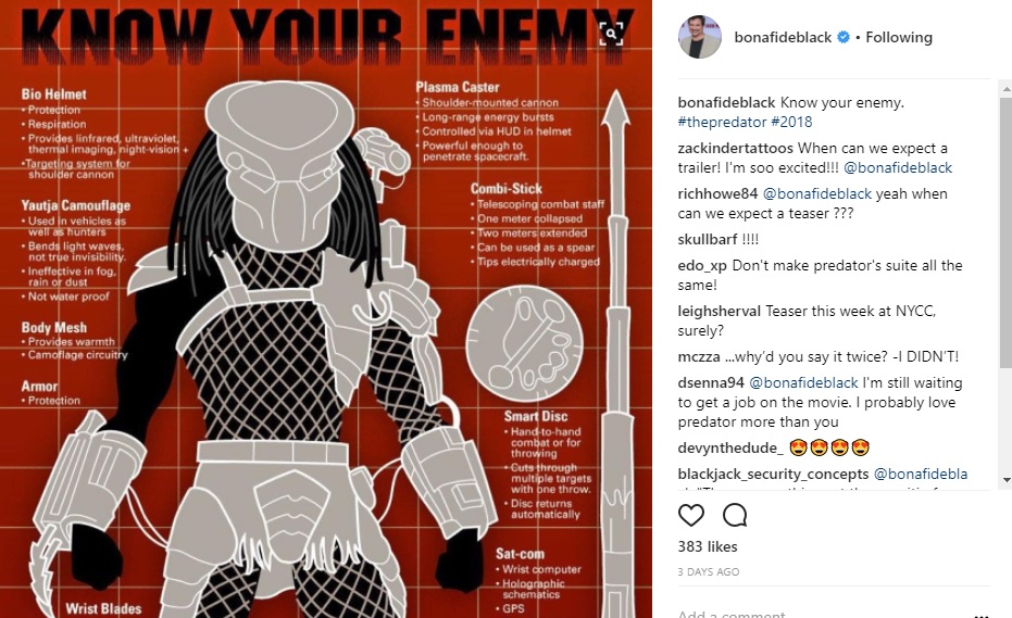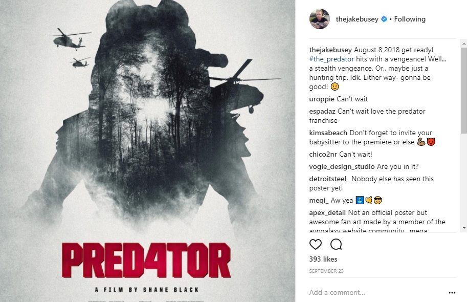 Apparently the poster above is not official, but a fan-art from the AVPGalaxy community. Pretty good wrap if Shane Black and Busey are sharing it though!! Good stuff