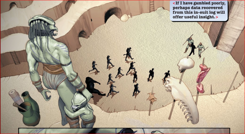 BigDave Yes, that is a great idea! To add even more complexity, it would be interesting to see what you suggest and then have them turn on a dime and demonstrate a sense of compassion/humanity/ethics. For instance, A human dad and son are being stalked. The dad tries to shoot the Predator and is quickly killed. The kid bolts towards a cliff in abject terror not realizing the danger. The female Predator understands he is a child and un armed- not a threat. It catches up with the boy who is scared shitless by now looking at the female Predator up close. The Predator puts him down and gestures him away from the cliff. The boy runs a bit, looks back and sees nothing since the Predator has cloaked and left to hunt down worthy prey. Something like that could really add depth to the female Predator.