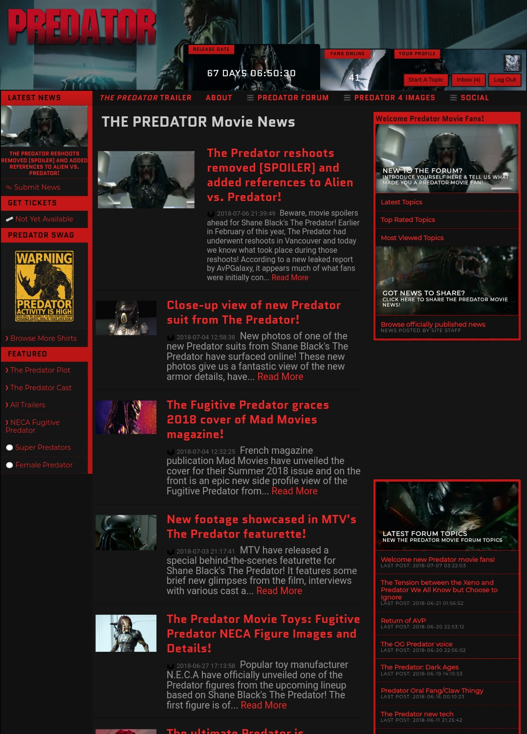 I hope everyone enjoys the changes I've made and I hope this update makes browsing news and interacting with other Predator fans that much easier.