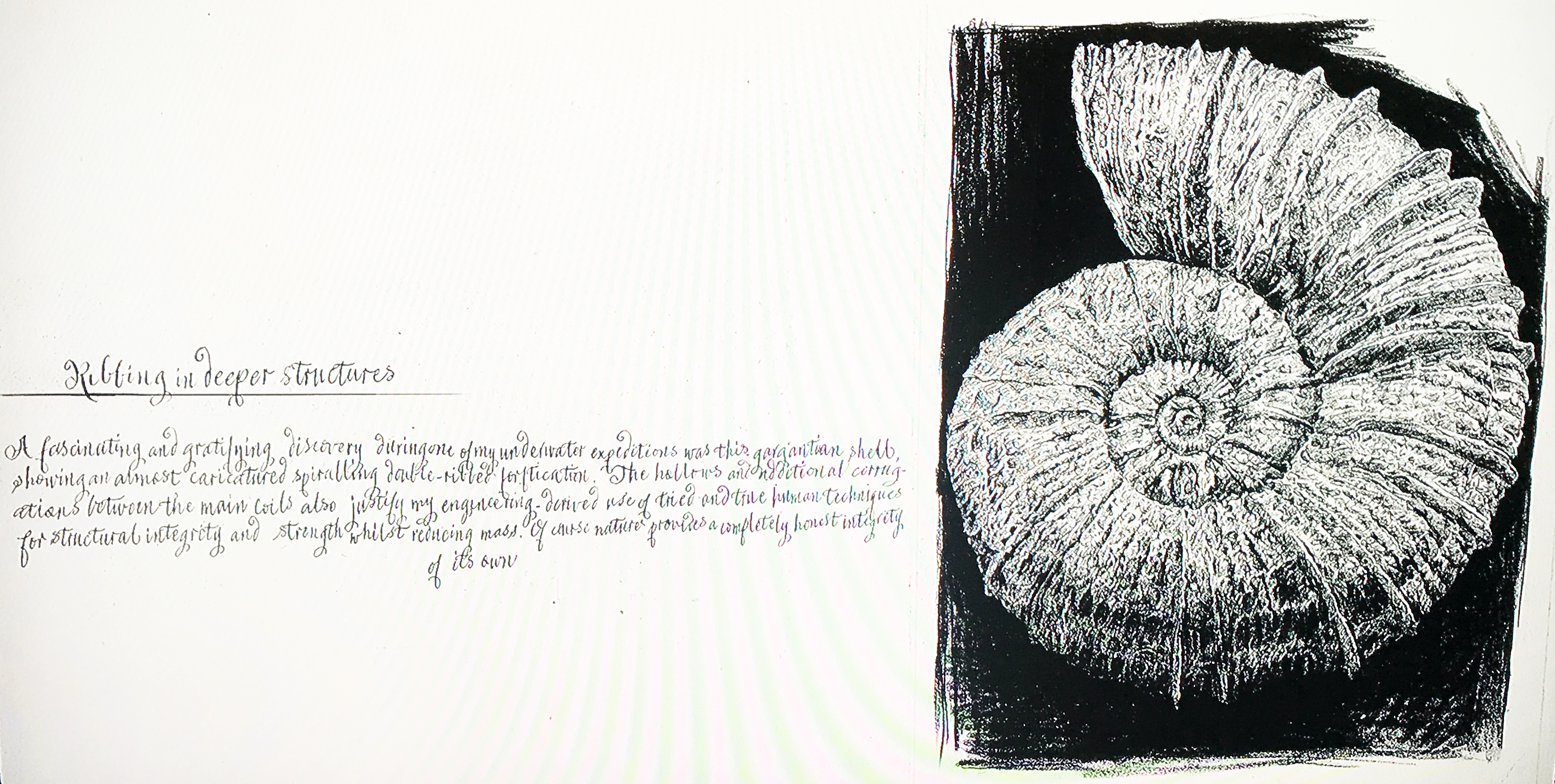 David explains in his notes the benefits of double-ribbing seen in organisms and goes to great length in his attempt to document “structural integrity and strength whilst reducing mass”, see below.