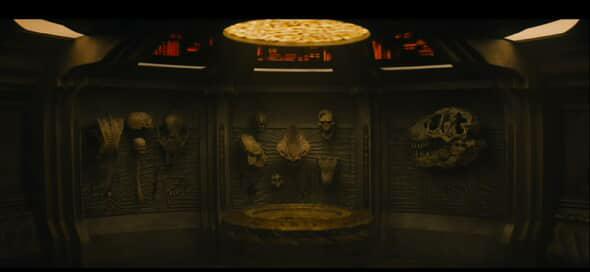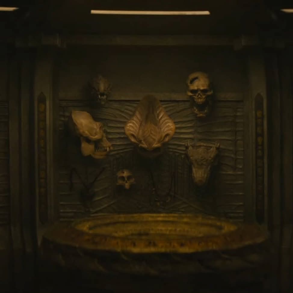 Like the Trophy room in Predator 2 acted as a foreshadow for the clash between the Alien Xenomorph and Predator, the Badlands teaser featured a very recognizable Skull on the new Trophy wall as well. Fans were quick to notice what looks like a skull of a Harvester, the locust-like Alien race featured in Independence Day: